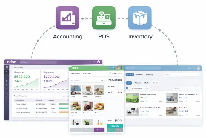 Accounting, Inventory, POS, CRM, Website
